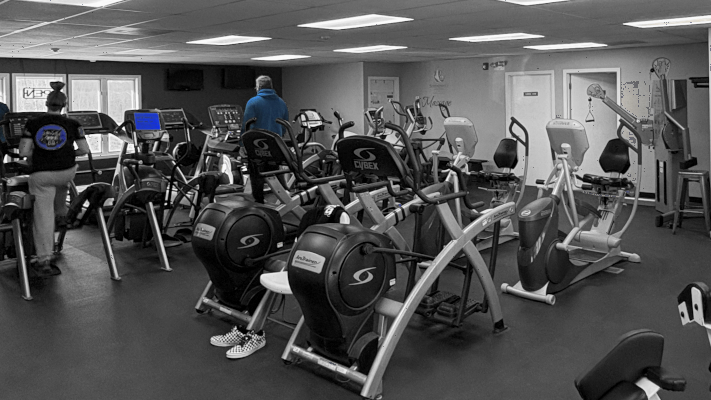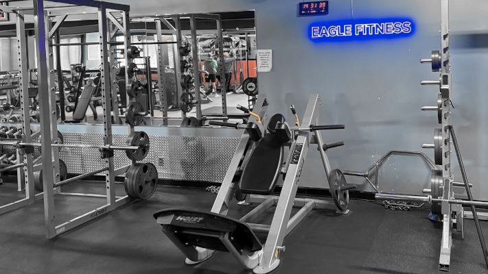Equipped for serious strength training with free weights, machines & cardio equipment.